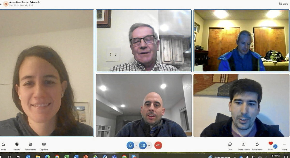 Hasiera batean igandeetan izaten zen bertso-eskolakoen hitzordu birtuala, goizez. Urrutikoetxeak gogoan du Ekialdeko kostaldean goizeko hamarretan hasten zirela, baina, noski, ordu aldaketen kontura, Wyoming eta Idaho aldean zortziak ziren. Gero, astearteetara aldatu zuten eguna. Eceizak ere aipatu ditu eskualde bakoitzeko ordutegietara moldatzeko egiten dituzten “tetris”-ak.