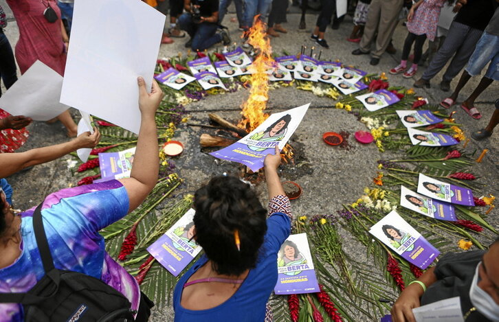 Kolonbia, Mexiko, Guatemala, Brasil eta Peru dira ingurugiroaren defendatzaile edo giza eskubideen aldeko ekintzaile izateko herrialde arriskutsuenak Latinoamerikan. Front Line Defenders (FLD) gobernuz kanpoko erakundearen arabera, soilik 2024. urtean 257 heriotza egon ziren, mundu mailan egondako heriotza guztien %80. Aipaturiko herrialdeetan dauden gatazka armatuak eta eredu estraktibistak daude gehien bat heriotza horien atzean, baina baita estatuen babes gabezia, inpunitatea eta «ingurugiroa babesteko legedien indargabetzea» ere. 2023rekin alderatuta, arazoa areagotu egin dela ohartarazi du Global Witnessek. Orduan, mundu mailan 196 ekintzaile hil zituzten, horietatik 166 Latinoamerikan. FLDren bozeramaile den Julia Limak salatu duenez, «egoerak okerrera egiten jarraitzen du». «Ingurugiroaren aldeko ekintzaileak kriminalizatzeko joera handitzen ari da. Biktimen nekea eta inpunitatea areagotzen ditu horrek». Kolonbian, esaterako, aurtengo lehenengo hiruhilekoan gutxienez 39 hilketa erregistratu dituzte. Mexikon «arrazismo sistemiko» bati aurre egin behar diotela nabarmentzen du FLDek; Amazonian, berriz, milizia armatuei, narkotrafikoari, legez kanpoko meatzaritzari... Irudian, Berta Caceresen heriotza salatzeko 2012an Tegucigalpan egindako mobilizazio bat.